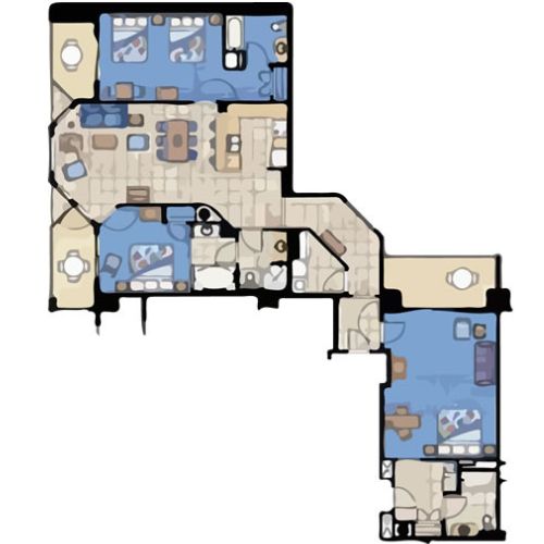 All three-bedroom villas are located in Aruba Surf Club’s Compass Tower. The Compass Tower is located in the middle of the resort, providing a great location for activities, dining, or relaxing by the pool. You’ll also have close access to resort travel accommodations to explore neighboring Marriott resorts and the rest of the island.